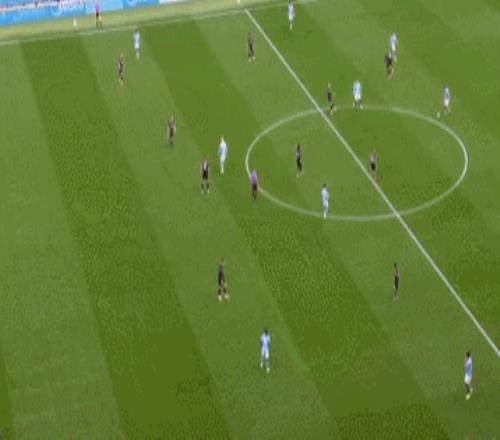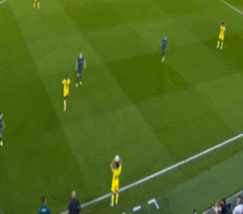 就像下面的動(dòng)圖所示,哈蘭德在斷球之后快速向前起速,隊(duì)友傳球是有失誤的,但哈蘭德還是成功拿到皮球。