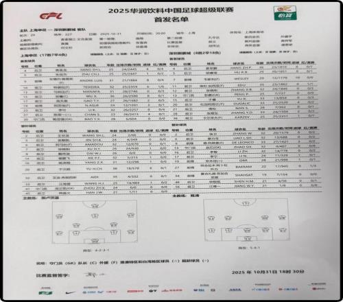 北京時(shí)間10月31日20:00,中超聯(lián)賽第29輪繼續(xù)進(jìn)行,排名第3的上海申花主場(chǎng)迎戰(zhàn)排名12的深圳新鵬城。本場(chǎng)比賽在上海體育場(chǎng)進(jìn)行,主裁判是麥麥提江。賽前雙方首發(fā)陣容公布如下: