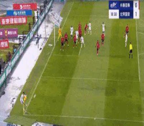 比賽第90+4分鐘,周俊辰挑傳,譚龍破門但越位在先。最終,北京國安4比0戰(zhàn)勝長春亞泰。