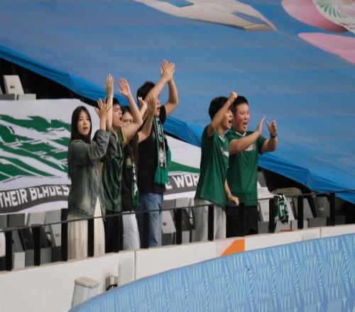 題圖說明:上海U20全運(yùn)男足隊員在晉級八強(qiáng)后,特別感謝現(xiàn)場觀賽助威的球迷。
