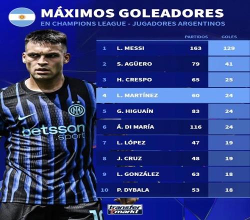 阿根廷球員歐冠進(jìn)球榜!迪瑪利亞五場比賽才進(jìn)一球效率排最后