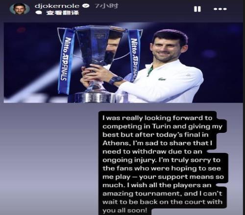德約科維奇自宣退出年終總決賽,穆塞蒂遞補獲得參賽資格