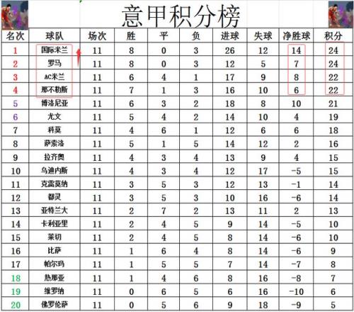 積分榜方面,國(guó)米和羅馬今天都贏了球,這樣的話他們就都超過了輸球的那不勒斯和本輪打平的AC米蘭,國(guó)米憑借著凈勝球優(yōu)勢(shì)力壓羅馬登頂,羅馬屈居第2。那不勒斯完敗后,不僅被國(guó)米,羅馬超過,還因凈勝球劣勢(shì),被AC米蘭躺著超過,跌到第4。