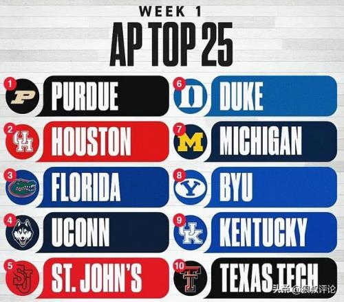 此前,普度大學(xué)隊(duì)史首次在美聯(lián)社季前25強(qiáng)榜單中排名第一位,球隊(duì)贏得了61張第一選票中的35張,這使得馬特-佩因特(Matt Painter)的球隊(duì)領(lǐng)先于上賽季NCAA冠軍賽的兩支球隊(duì),亞軍休斯頓大學(xué)排名第二,衛(wèi)冕冠軍佛羅里達(dá)大學(xué)排名第三。
