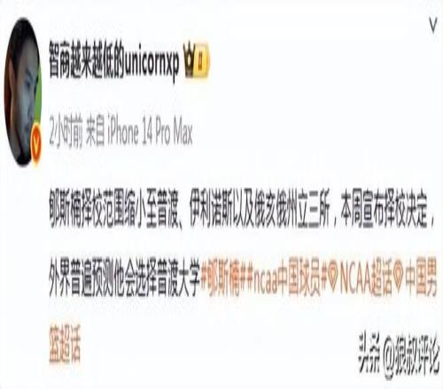 Joe Tipton表示,預(yù)計(jì)郇斯楠將于本周晚些時(shí)候宣布大學(xué)擇校決定。
