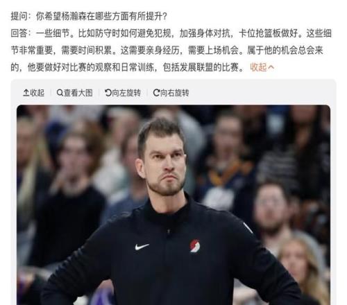 楊瀚森前途未卜,開拓者主帥發(fā)話:他需做好3點,才能立足NBA