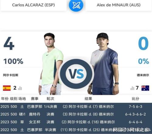 果然,昨晚首場(chǎng)比賽中,德-米納爾給阿爾卡拉斯制造了很大的麻煩。雖然最后比分是6:7 2:6,德-米納爾輸?shù)袅藘扇寺殬I(yè)生涯第五次交鋒,但是阿爾卡拉斯絕對(duì)不是兩盤(pán)完勝對(duì)手,而是艱難獲勝,特別是第一盤(pán)搶七,贏得驚險(xiǎn)無(wú)比。