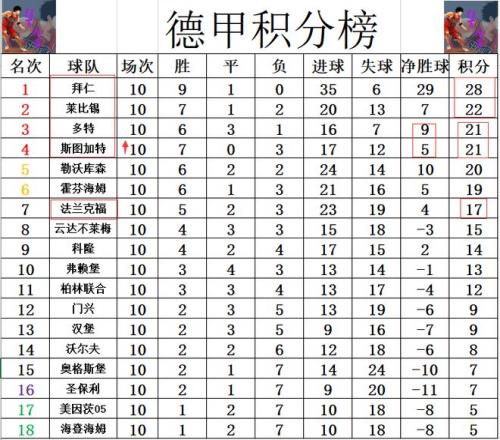 德甲最新積分戰(zhàn)報斯圖加特逆轉(zhuǎn)差拜仁7分法蘭克福4輪不敗升第7